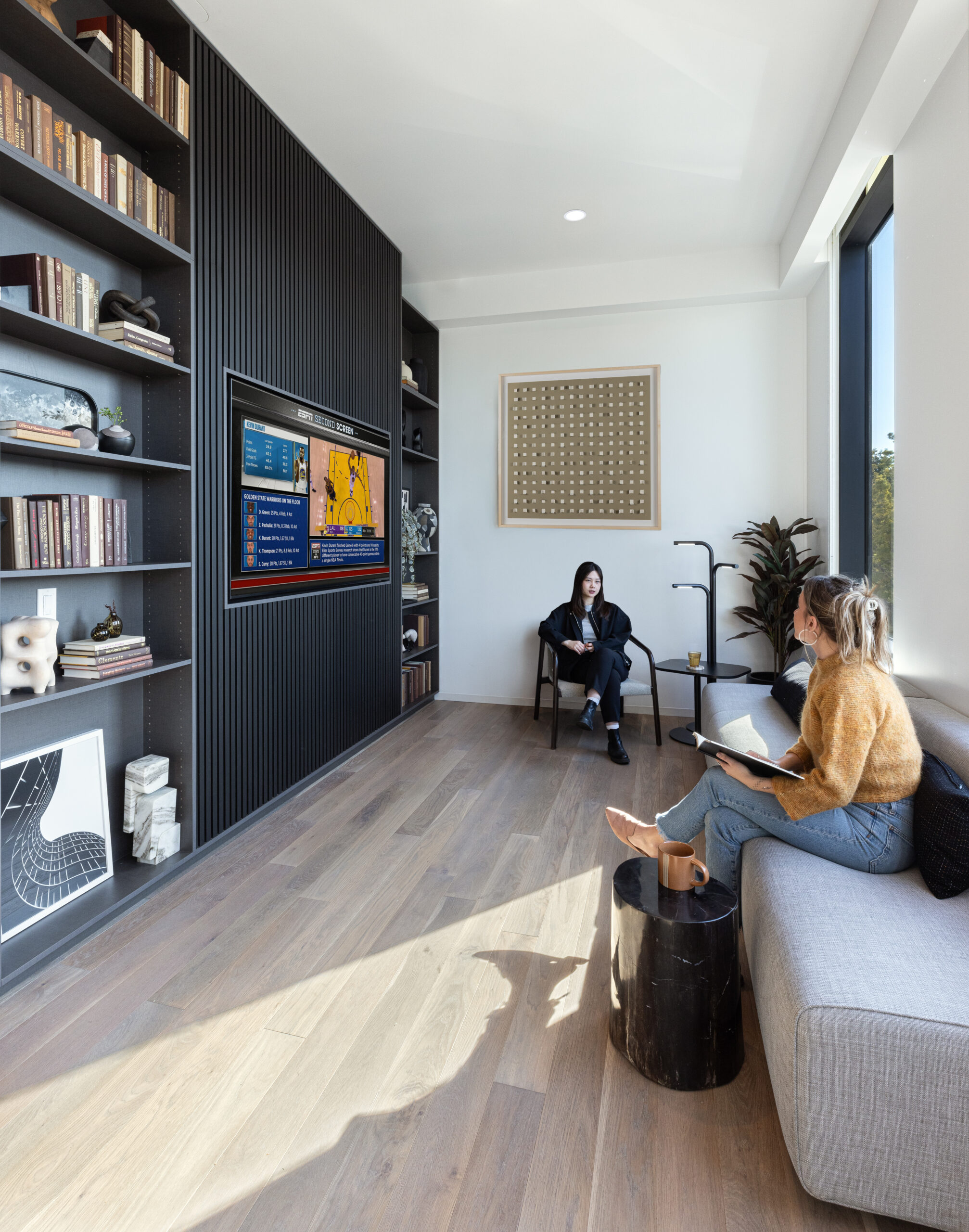 This project transformed a 1950s Masonic Temple into the modern headquarters for the law firm Adamson Ahdoot in Los Angeles, CA . The full-building renovation included (65) Allsteel Further workstations, (19) Allsteel Approach Private Offices, (2) Bernhardt Custom Partner Offices, (2) Conference rooms, Lobby, multiple Collaboration Areas, Phone Rooms, Café, and Outdoor area.